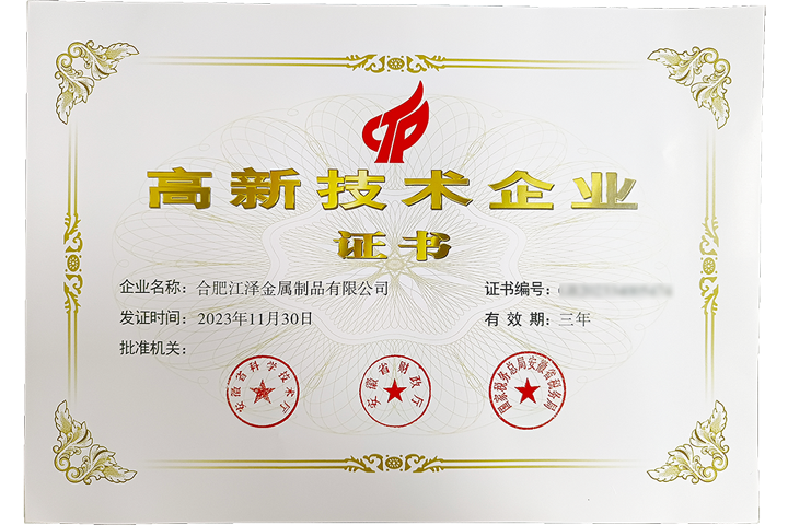 近日,經(jīng)過(guò)層層評(píng)審,江澤金屬憑借出色的專(zhuān)業(yè)能力與實(shí)力,成功獲批高新技術(shù)企業(yè)認(rèn)定,標(biāo)志著公司整體技術(shù)水平和自主創(chuàng)新能力邁上了一個(gè)新臺(tái)階,對(duì)公司提升企業(yè)品牌形象、促進(jìn)企業(yè)轉(zhuǎn)型升級(jí)、提高企業(yè)市場(chǎng)價(jià)值和資本價(jià)值、吸引核心人才等方面有著重要意義。